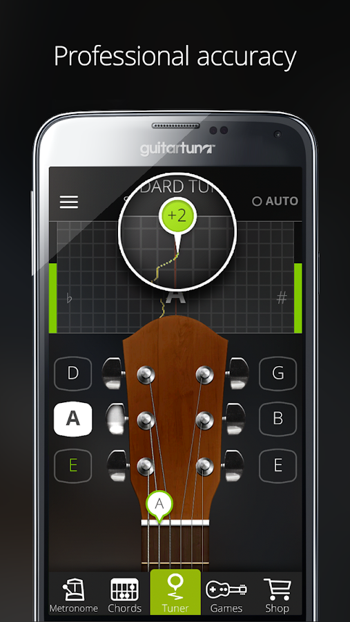 Untuk guitar tuner, saya menggunakan aplikasi android bernama GuitarTuna. Sebenarnya GuitarTuna ini tidak hanya bisa digunakan untuk tuning gitar. Ada berbagai fitur lain, namun saya memang hanya menggunakannya untuk keperluan tuning dan melihat Chords Library-nya.
